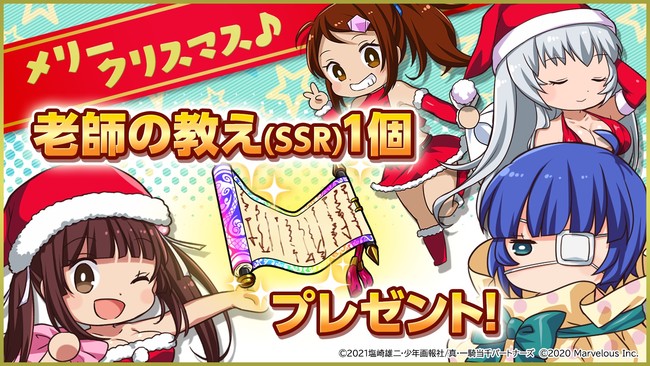 期間中、ログインいただくと『老師の教え(SSR) 1個』をクリスマスプレゼントとしてプレゼントボックスに送付します。