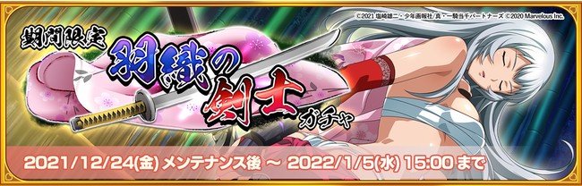 株式会社マーベラス(代表取締役社長 許田周一/所在地:東京都品川区)は、原作が20周年を迎えた大人気シリーズ「一騎当千」のAndroid/iOS向け新作ゲームアプリ『一騎当千エクストラバースト』で、2021年12月24日(金)から、「バーストフェス」、及び、クリスマスプレゼントの配布や年越しログインボーナスを開始したことをお知らせいたします。