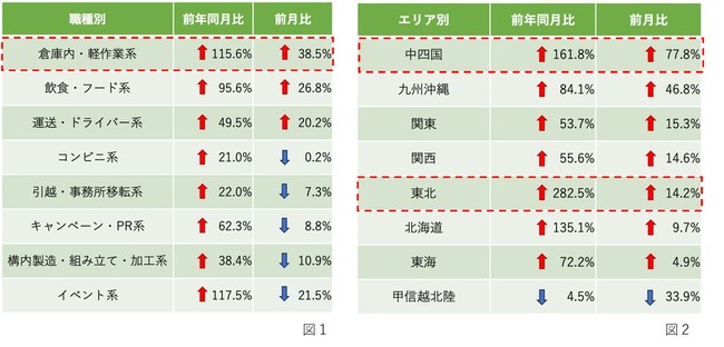 【職種別】「キャンペーン・PR系」「倉庫内・軽作業系」が前年同月比・前月比でともに増加