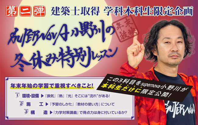 12月27日(月)より限定公開開始!建築士取得 応援企画「Supernova小野川の冬休み特別レッスン」