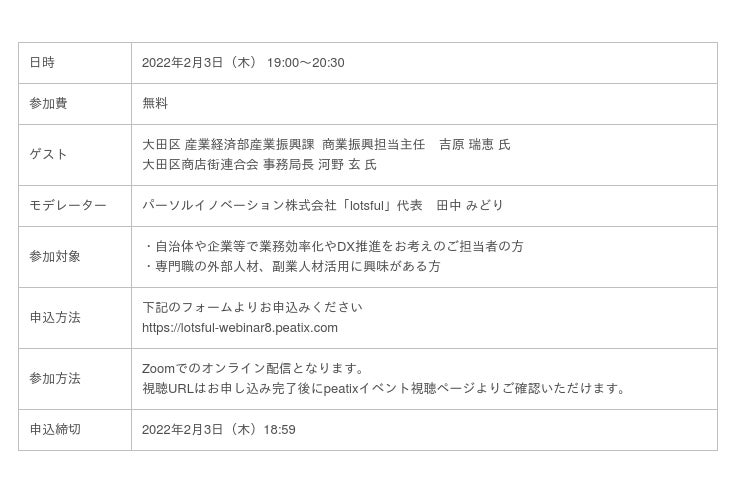 【2/3(木)19:00開催】大田区、大田区商店街連合会が登壇!「自治体×デジタル人材活用~副業人材とのDX推進・業務改善の裏側~」