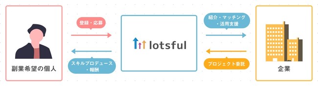 「lotsful」は、スキルアップを目的にした経験豊かな副業人材をターゲットに、大手企業・ベンチャーの両方に精通した専任タレントプランナーがマッチングを行う副業人材マッチングサービスです。業務切り出しのサポートから、副業スタート時の煩雑な契約周りまでパーソルの豊富な人材支援ノウハウを活かしたオンボーディングをサポートし、副業受け入れが初めての企業については副業人材活用の仕組みづくりから支援します。企業と個人が成長できる副業サイクルの構築を目指して取り組んでまいります。
