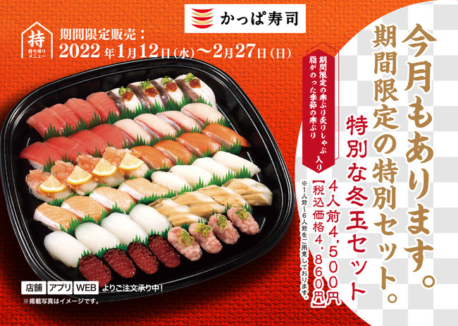 2022年も“うまい!”かっぱ寿司をご自宅でもお楽しみください! 寒ぶりも堪能できる『特別な冬玉セット』登場
