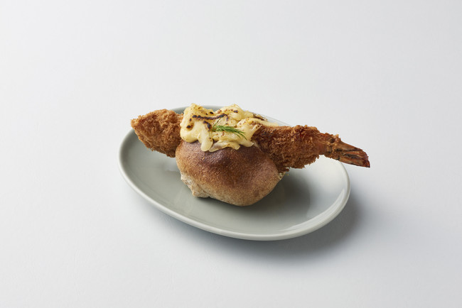 エビフライとパンのもっちり食感、上に乗せたタルタルソースがよく絡み合います。