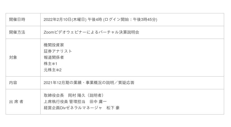 株主・投資家出席型バーチャル決算説明会開催のお知らせ
