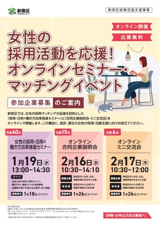 1月、2月には女性の採用・活用支援のためのオンラインセミナーや女性求職者を対象としたオンライン合同企業説明会、女性や外国人を募集する企業様のPRを兼ねた動画制作サービスを予定しておりますので是非ご活用ください。