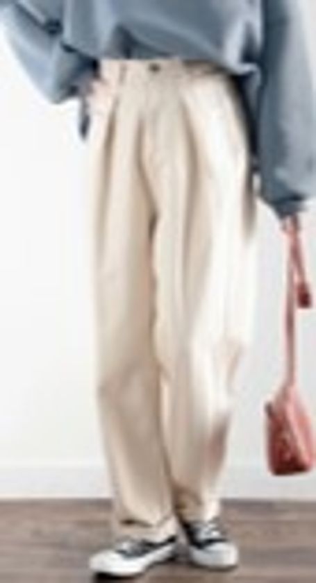 ウエストのギャザー&ツインボタンが印象的なコーデュロイ素材のパンツ。こっくりした色合いとコーデュロイならではの温かみのある素材は季節感たっぷりで、腿から裾にかけてゆったりとしたテーパードのデザインは気になる脚のラインをカバーしつつ、細めの裾で嬉しい細見え効果も。ビッグシルエットのトップスやゆるっとしたローゲージニットと合わせても可愛く、バルーンシルエットを活かすコンパクトなサイズ感のトップスでも決まります。冬の様々なアウターとも相性が良い便利なパンツです。