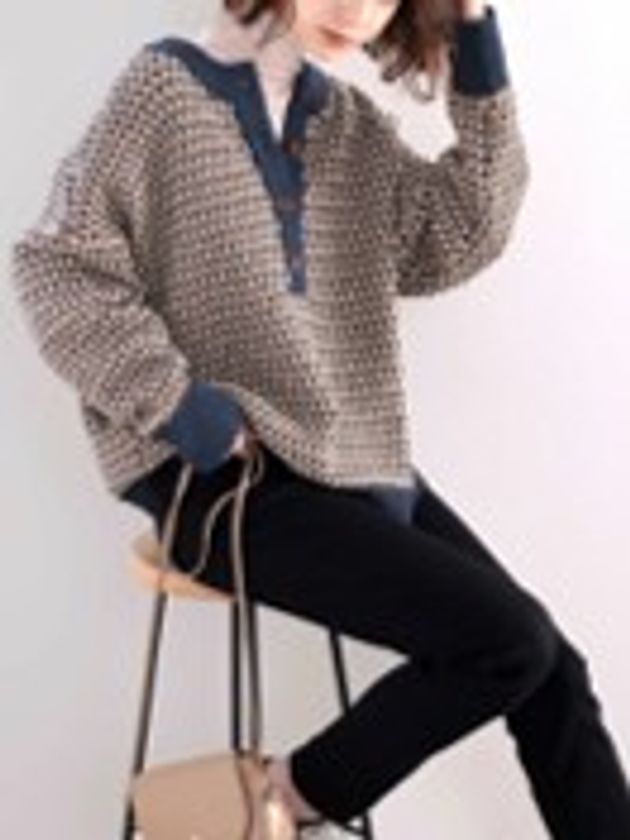 レトロ&クラシカルなカラー使いが印象的な前後2wayで着回せるジャガード柄のニット。レトロムードを高めてくれる大きめボタンを前に持ってくるだけで全体の印象も変わり、コーデの幅も広がります。ゆったりめのサイズ感や袖や裾の切り替えが絶妙で、手持ちのデニムはもちろん、キレイめパンツと合わせて大人マニッシュなスタイルもおススメです。1枚で真冬コーデの主役級アイテムになること間違いなしのお洒落ニットです。