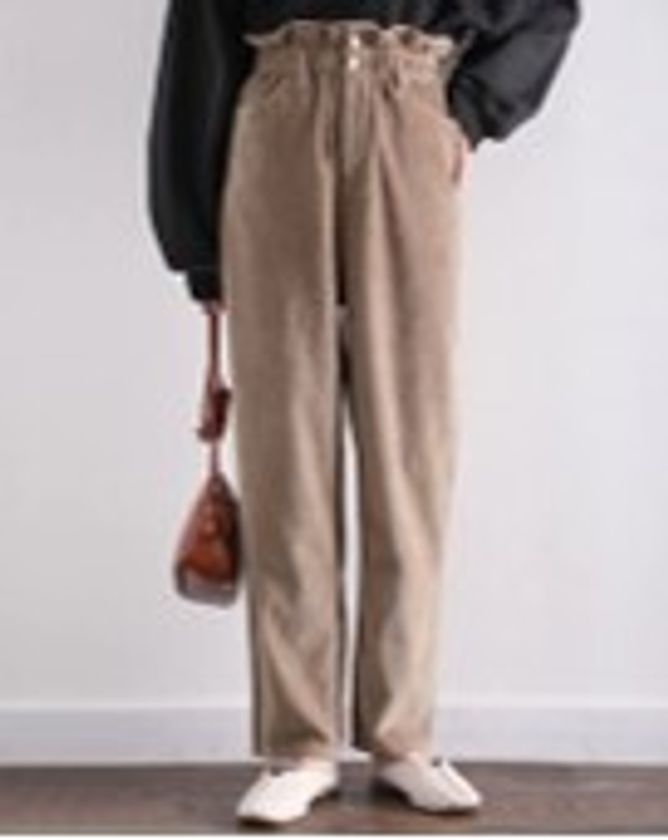 ギャザーウエスト コーデュロイハイウエストテーパードパンツ