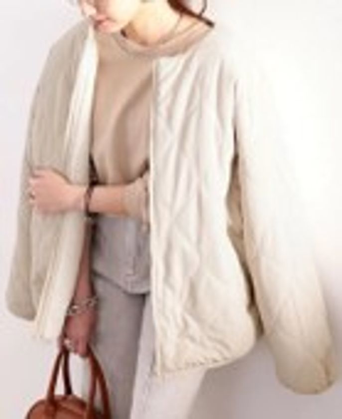 滑らかな肌触りのふわふわファー×大人カジュアルなキルトのリバーシブル仕様のブルゾン。その日の気分や気温によってどちら側で着ても可愛くお洒落に着こなせます。トレンド感のあるファーと同系色のパイピング使いで高見えするのも嬉しいポイント。中綿入りでボリューミーなのに、首元をすっきりと見せるノーカラーのデザインは、マフラーやタートルネックなどの冬の定番アイテムとの相性も抜群です。敢えてダボっとしたゆるパンツを合わせて、メンズライクなコーデを楽しむのも正解。