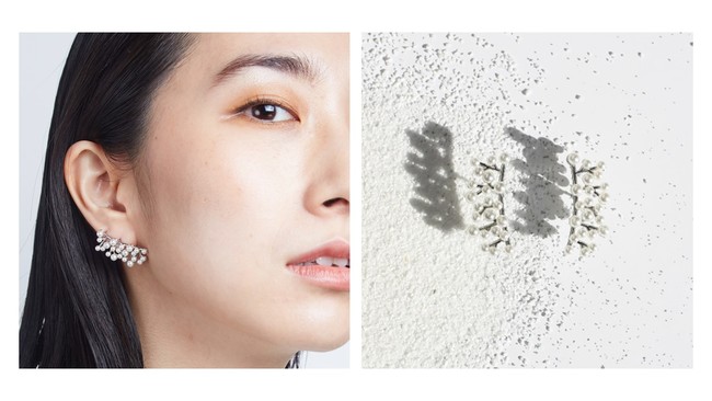 小粒なサイズ展開が可能なプラスティックパールで繊細な粉雪のようなピアスをデザインしました。