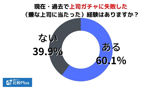 上司ガチャに失敗した(嫌な上司に当たった)経験がある人は約60%