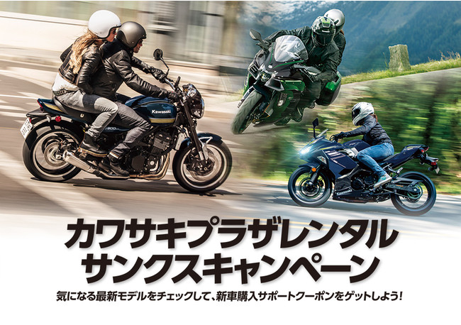 株式会社カワサキモータースジャパン(本社:兵庫県明石市、代表取締役社長:桐野 英子)は、期間中カワサキプラザもしくはK Used & Rental TOKYOで対象機種をレンタルいただいたお客様に、新車購入時にご利用いただけるクーポンをプレゼントする「カワサキプラザレンタルサンクスキャンペーン」を実施いたします。