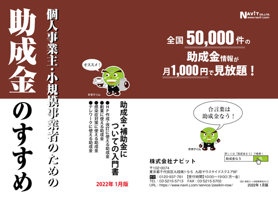 株式会社ナビット(東京都千代田区九段南、代表取締役:福井泰代)が運営する「助成金なう」では、小冊子「個人事業主・小規模事業者のための助成金のすすめ」を1月21日(金)~3月31日(木)まで配信いたします。