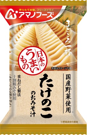 アサヒグループ食品株式会社(本社 東京、社長 川原浩)は、「アマノフーズ」ブランドの『まごころ一杯 たけのこのおみそ汁』を2月21日より通信販売から数量限定で新発売します。