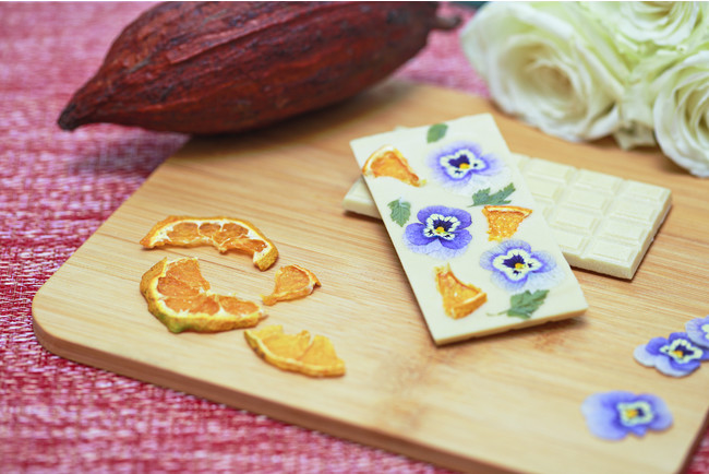 エディブルドライフラワーとドライオレンジを散りばめた見た目も華やかなCBD入りのホワイトチョコレートです。