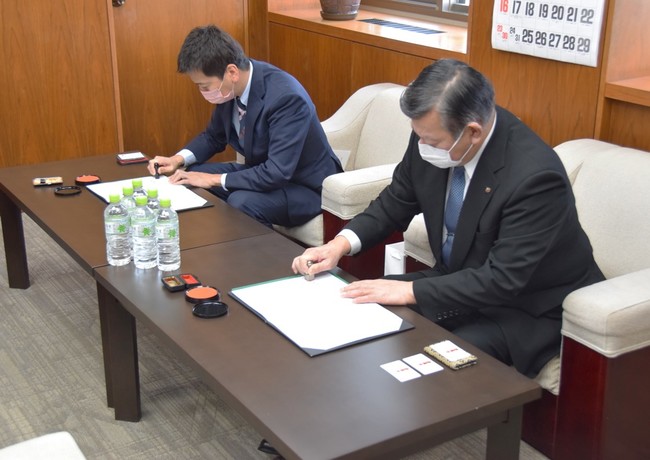 「現在、地球上のいたるところで自然災害が発生しております。特に日本列島は、夏場の台風や集中豪雨、大きな地震等が心配されているなかで、このたびの締結は非常に力強く感じています。災害時に一番必要なものは、人間の命を繋ぐ飲料水であることは間違いありません。引き続きご協力をいただきながら、さらに暮らしやすい安心・安全な町を目指したいと思います。」