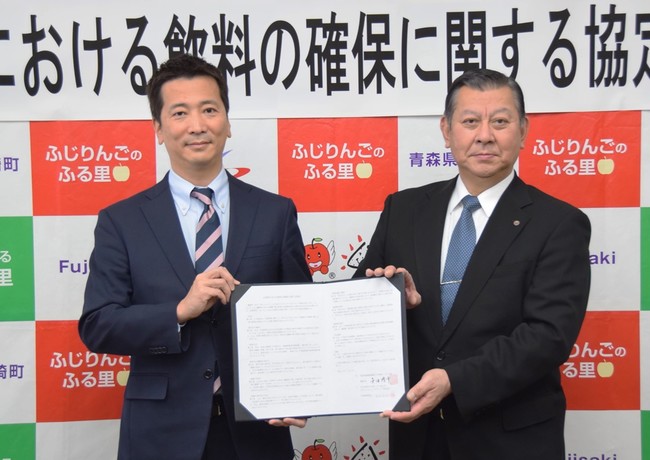 この協定は、藤崎町における地震、風水害等の災害発生時又は発生のおそれがある場合における飲料供給に関し、必要な事項を定めています。なお、同様の協定締結は当社事業エリア(岩手県・秋田県・青森県)内では78件目、青森県内では29件目となります。