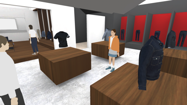 今回、「メタパ™」内に、「桃太郎JEANS児島味野本店」を再現。岡山県倉敷市に行かないと見ることができない本店の雰囲気を感じながら、バーチャルショッピングが可能です。