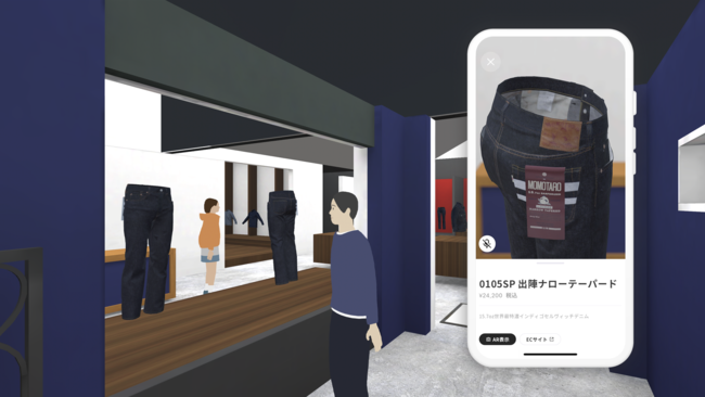 仮想空間上に構築されたバーチャル店舗を一つに集めたアプリ「メタパ(TM)」に岡山県倉敷市にある「桃太郎ジーンズ」が出店。店員のアバターから情報発信ができる「NPC機能」も新たに実装