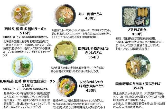 北海道有名店監修のラーメン、山梨のほうとう、関西だしのうどんなど地域色豊かな商品を取り揃えました。ぜひご自宅等でお楽しみください。