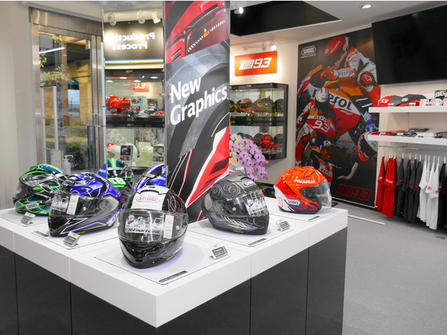 当日の会場となる「SHOEI Gallery OSAKA」はSHOEIのオフィシャルショールームとして昨年の12月に大阪市淀川区西中島にオープンいたしました。このショールームでは製品の販売だけでなく、SHOEI契約ライダーの本人用ヘルメットや写真を展示しており、また、ヘルメットの内装調整サービス「SHOEI Personal Fitting System」を常時実施、メーカーオフィシャルならではの体験ができるショールームとして、オープン以来多くのお客様にご来場をいただいています。