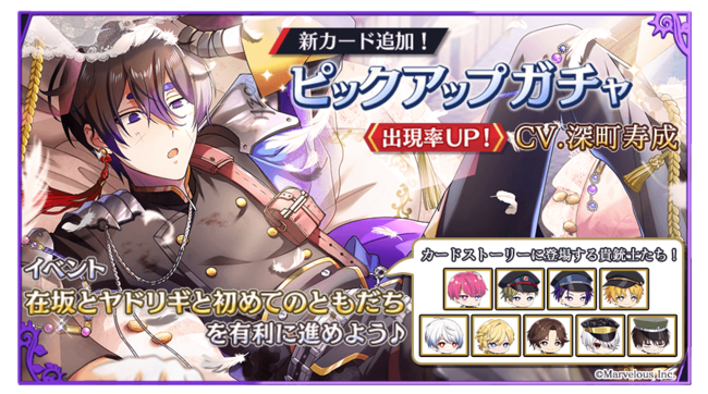 株式会社マーベラス(代表取締役社長 許田周一/所在地:東京都品川区)による、『千銃士』プロジェクトの完全新作スマートフォンゲーム『千銃士:Rhodoknight』(読み:せんじゅうし ろーどないと 以降、『千銃士R』)は、1月31日より開催中のストーリーイベント「在坂とヤドリギと初めてのともだち」にあわせて、イベント内で活躍する★3「邑田(CV:深町寿成)」の新カードがピックアップで登場する期間限定ガチャを開催いたします。