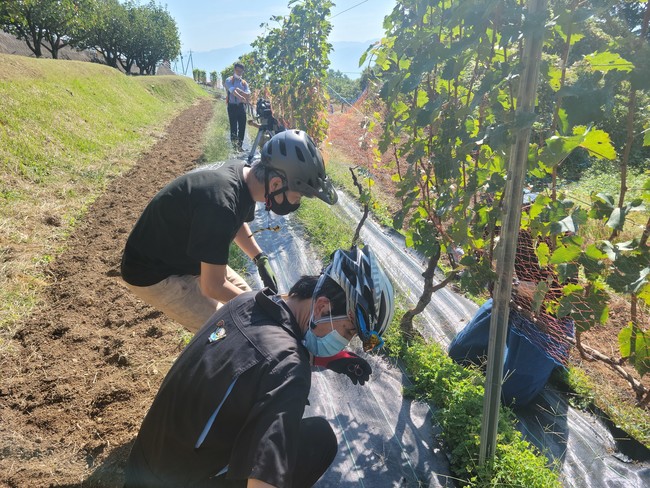 その許認可を取得するにも、マウンテンバイクの活動は地域コミュニティと切っても切り離せないものです。これまで地域の方々が関わりを持たれてきた森林・山道を使用させてもらっているという感謝の意識と実際の行動が必須であり、その実績により、結果的に地域社会や行政が動き、正式にマウンテンバイク推進の動きが起きます。当法人は、地域の夜祭りの手伝いや清掃活動、耕作放棄地を活用したワインづくり、高齢者コミュニティ支援など様々な形で地域との交流、信頼関係構築を続けてきました。