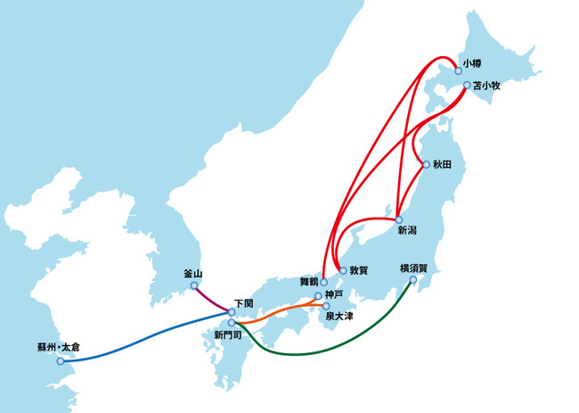 ※国際航路としては、下関-釜山の関釜フェリー、下関-蘇州太倉の蘇州下関フェリーがあります。