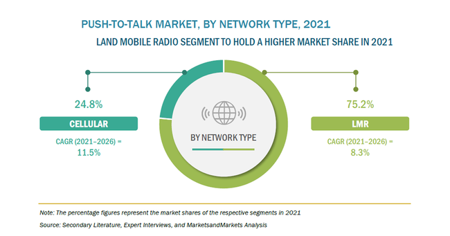 プッシュツートーク(PTT)の市場規模は、2021年の292億米ドルからCAGR9.1 %で成長し、2026年には452億米ドルに達すると予測されています。インフラ管理や都市監視のためのIoT技術の導入や、都市人口の急激な増加など、さまざまな要因がプッシュツートークのハードウェア、ソリューション、サービスの採用を促進することが考えられます。