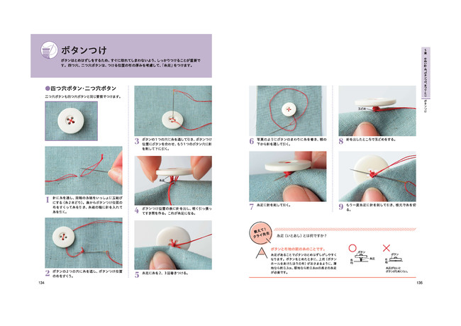 ボタンやタグのつけ方、すその上げ方など暮らしに役立つ裁縫も