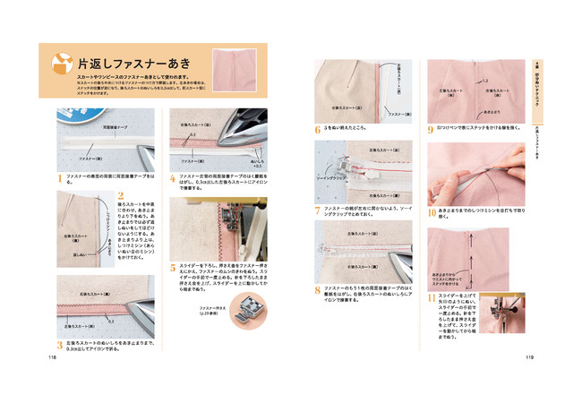 ファスナー、ポケットつけなどさまざまなテクニックは写真で詳しく紹介