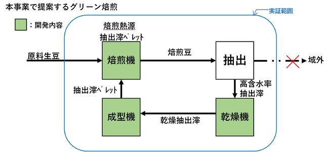 「コーヒー抽出滓の汎用固形燃料化とグリーン焙煎技術の開発」