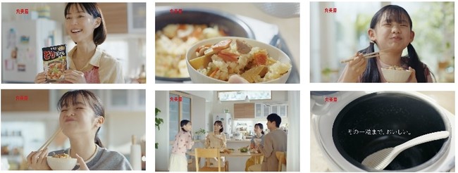 とある休日のお昼頃、リビングでゲームに集中する次女(古川凛さん)、観葉植物にお水をあげるパパ、そしてお昼ごはんに「とり釜めし」の準備をするママ(木村佳乃さん)。炊飯器から漂うおいしそうな匂いに次女が嬉しそうに反応し、タイミングよくお腹を空かせた長女(豊嶋花さん)も部活から帰ってきます。たくさん作って、残ったらおにぎりにでもしようと企むママでしたが、みんなのおかわりが止まらず、気づけば炊飯器は空っぽに。「釜めし」によって食欲が刺激される様子を描きつつ、家族の日常に流れる幸せなひとときを表現しました。