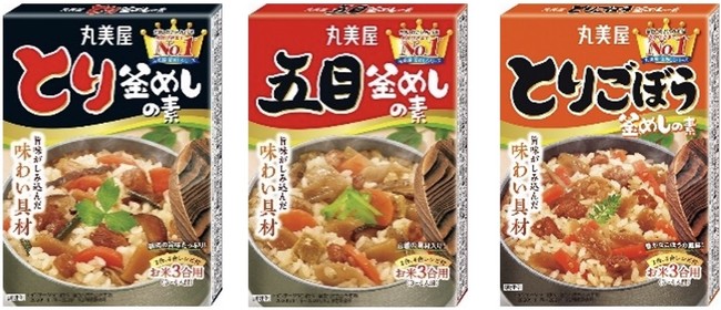 炊飯器に入れて炊くだけですぐできる丸美屋「釜めしの素」はおかげさまで全国No.1※の釜めしの素シリーズです。具材の食感が楽しめるように、一つ一つ大きめにカットしたこだわりの具材が入っています。主役の鶏肉に筍・にんじん・椎茸・わらびが入った定番の「とり釜めしの素」や、8種類の具材が入ったボリュームたっぷりの「五目釜めしの素」など、毎日の食卓を華やかにする24種類のラインアップで発売中です。