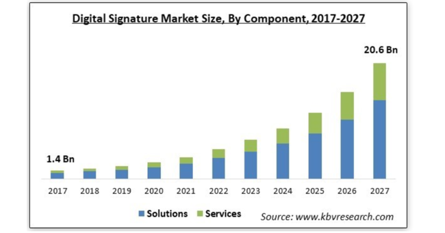 デジタル署名の市場規模、2027年には206億ドル2,000万米ドルに到達予測