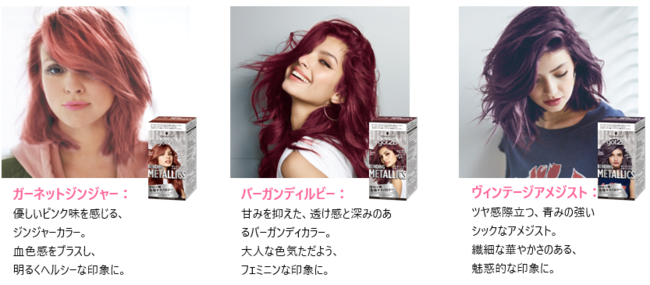 メタリックのような艶と透明感、鮮やかな発色。ボンディング・ブリーチでベースの色を明るくした髪に使って、セルフではなかなか表現できなかったトレンド感のあるメタリックカラーが楽しめます。