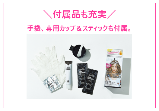 ブリーチは髪のベースメイクアップ。コスメのように髪色を楽しんで欲しいから、ダメージレスを追求しました。ヘアサロンで話題のボンディング・テクノロジーを搭載、ブリーチ時の負担を軽減し、しっかりハイトーンに。