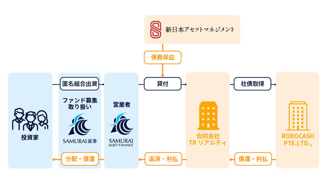 このファンドは、営業者であるSAMURAI ASSET FINANCE株式会社(以下、「営業者」といいます。)が合同会社TRリアリティ(以下、「貸付先」といいます。)に対して貸し付けする貸付型クラウドファンディングとなります。貸付先の資金使途は、グローバルFINTECH企業であるROBOCASH PTE. LTD., (以下、「ROBOCASH」といいます。)がシンガポールで発行済の米ドル建て社債(以下、「本社債」といいます。)の取得資金の借り換えとなります。
