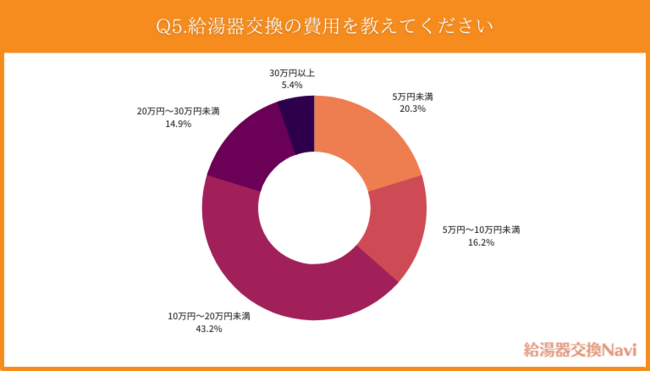 ・また、給湯器交換の費用として、1位「10万円~20万円未満」2位「5万円未満」3位「5万円~10万円未満」という結果になりました。