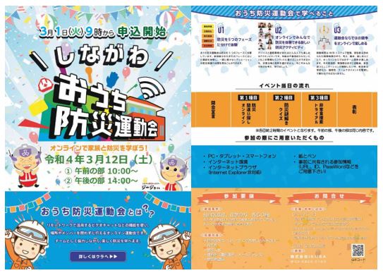 品川区では、3月12日(土)に、防災オンラインイベントを開催します。家族で参加できますので是非ご参加ください。