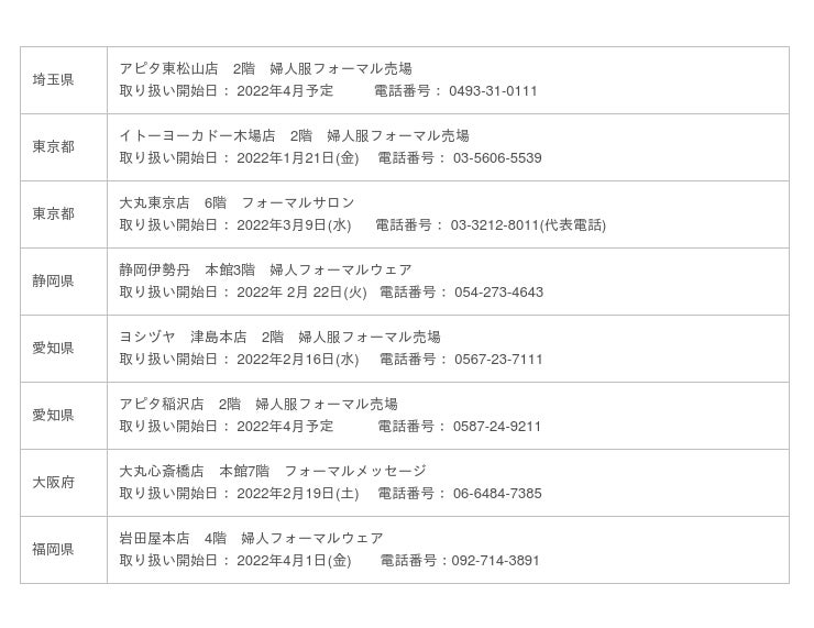 - 東京ソワール「フォーマルコンセプトショップ」くずはモールに11/14オープン10/30 10:00