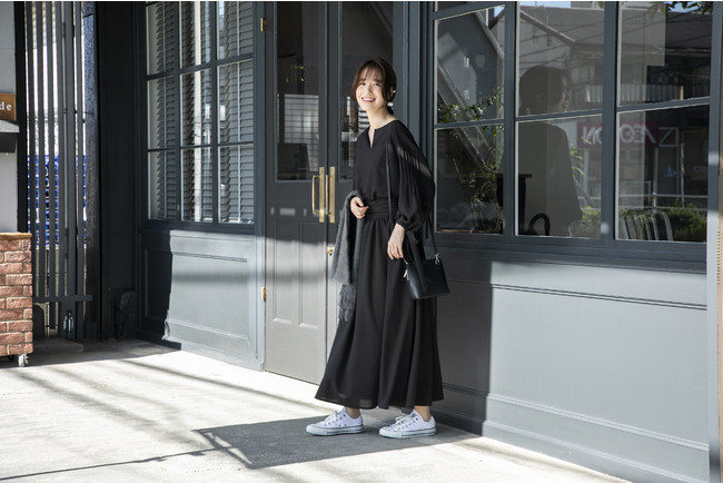 リラックス感を感じさせる大人のブラックドレス。価格:¥42,900