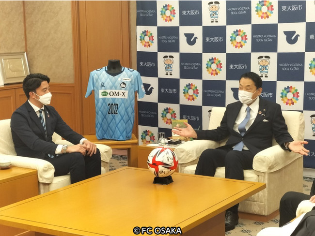 大阪府東大阪市をホームタウンとするサッカークラブ「FC大阪」は、 3月2日(水)16時より、JFL 2022年シーズン開幕のご挨拶のために、東大阪市 野田 義和市長へ表敬訪問を行いました。