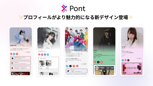 PONT株式会社(本社:東京都渋谷区、代表取締役:脇山 雄気)は、 クリエイターの魅力がより伝わる新デザインのプロフィールページをリリースしました。今回は30名の人気クリエイターが新デザインでPontのページを公開しました。
