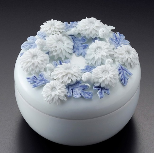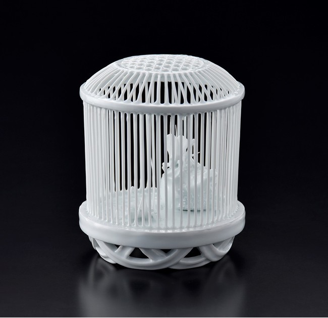 2019年 天皇陛下御即位を祝し、長崎県から一四代平戸悦山謹製 白磁細工「菊花 虫かご」献上の栄を賜る
