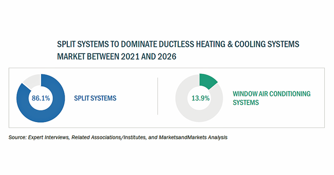 ダクトレス熱交換システムの市場規模は、2021年の984億米ドルからCAGR8.1%で成長し、2026年には1,450億米ドルに達すると予測されています。ダクトレスシステムにIoTが導入されたことで、商業施設や住宅での需要が高まっています。ダクトレス熱交換システムは、多くの技術に基づくさまざまなタイプがあり、その機能は用途によって異なります。