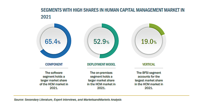 人的資本管理(HCM)の市場規模は、2021年の223億米ドルからCAGAR7.5%で成長し、2026年には320億米ドルに達すると予測されています。人工知能(AI)や機械学習(ML)などの新技術とHCMソフトウェアの統合は、各地域でHCMソフトウェアおよびサービス導入の強力な要因の1つとして浮上しています。現場とオフィスの人員を効率的に管理するために中小企業の間でクラウド導入が進んでいることが、HCMベンダーに市場機会をもたらすと予想されます。