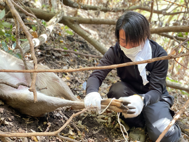 静岡県で一番人口が少ない松崎町では高齢化が進み、狩猟者数は減少する一方で鹿猪による被害は増大。この問題を体験ツアーで解決できないか?と狩猟ツアーを企画。2023年には食肉処理場を開設予定。現在松崎町では食肉処理場がないため、狩猟したのはいいが食肉として流通していない問題も同時に解決する。