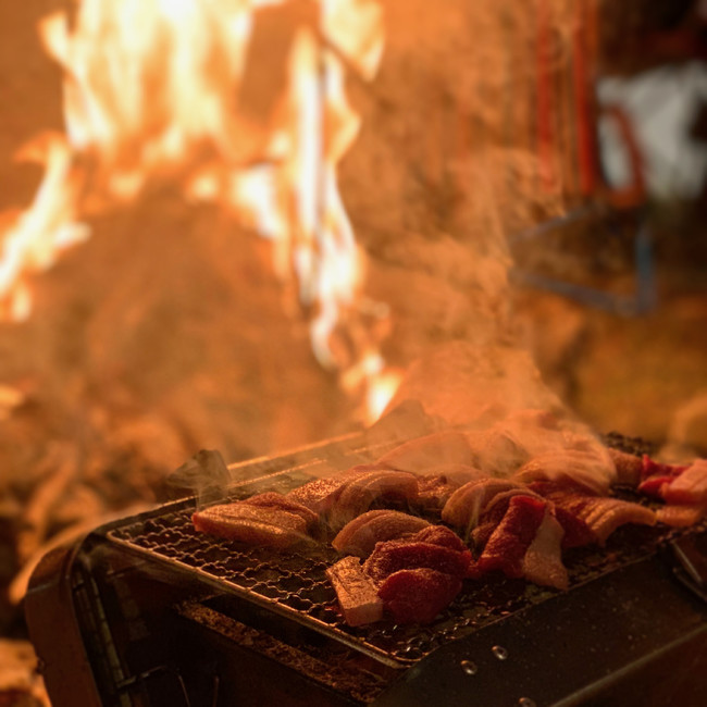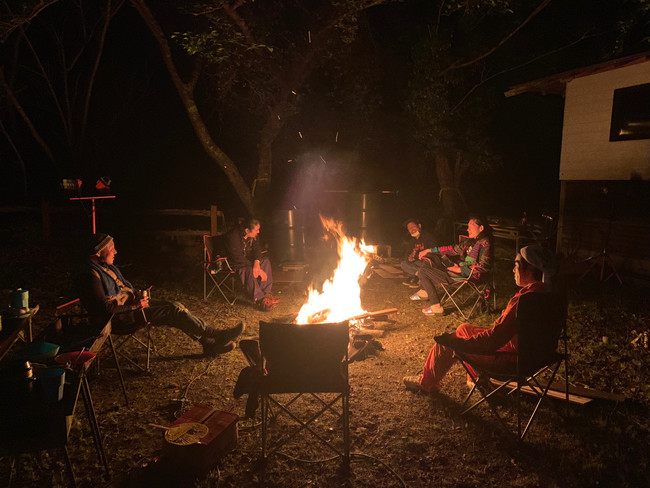 焚き火を見ながら会話やお酒を楽しいんだり、不思議と焚き火を見ながらだとネガティブな言葉が出なくなる。顔を見ながら話すというより、揺らめく炎を見ながら、時折顔を見合わせる。人の反応が気になる距離感、忙しい時間などで疲れてる人にとって、揺ら揺らとゆっくり過ぎる時間を楽しんでほしい。